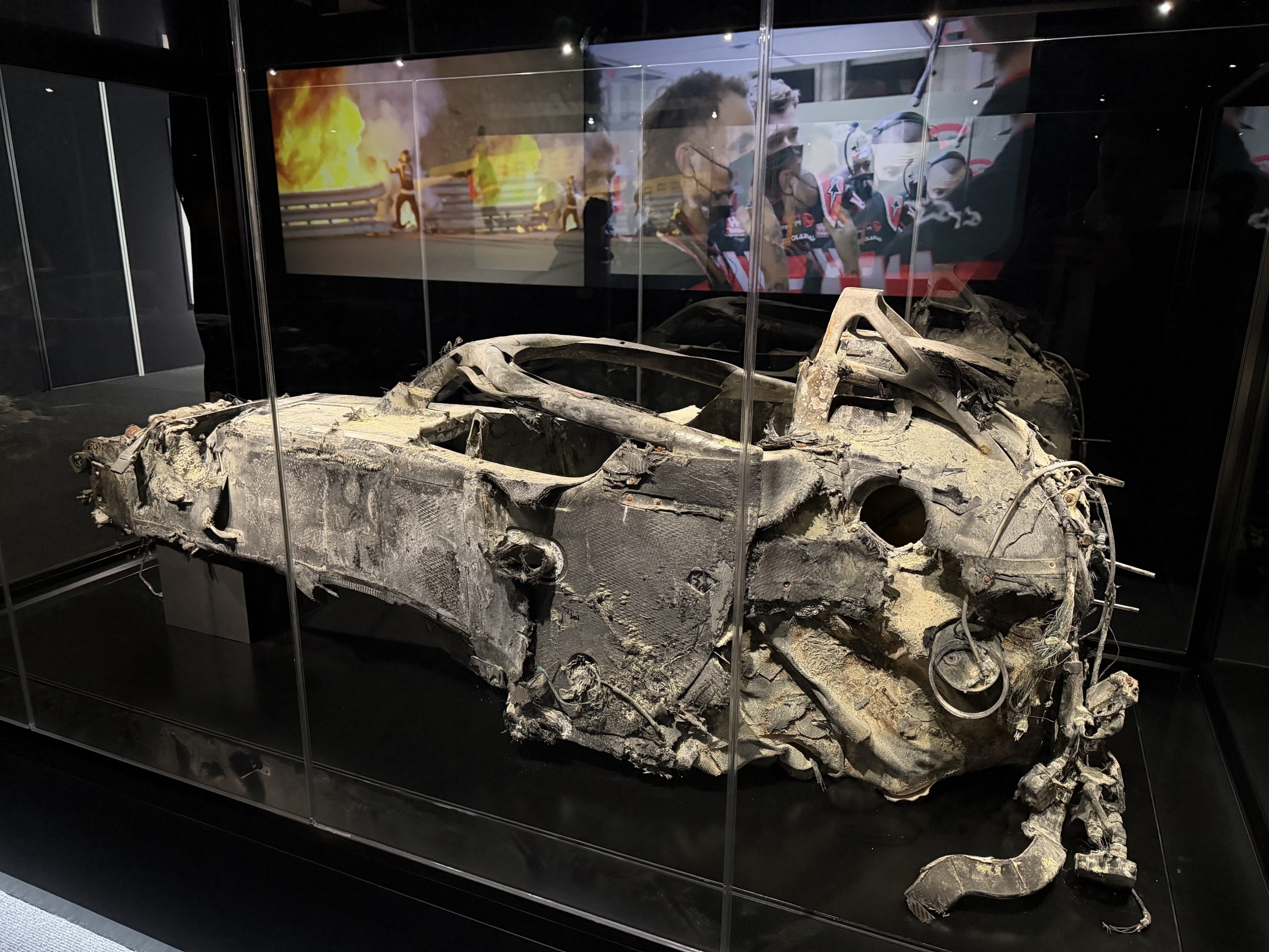 Die F1-Ausstellung bringt ein Stück Formel 1 zurück nach Deutschland und birgt dabei viele Highlights. Für Schulte sticht ein Teil aber besonders hervor: „Highlight kann man es nicht nennen, aber das Wrack von Grosjean in echt zu sehen, war schon ein Gänsehautmoment. Als ich das im Fernsehen gesehen habe, da blieb uns allen, glaube ich, kurz das Herz stehen.“