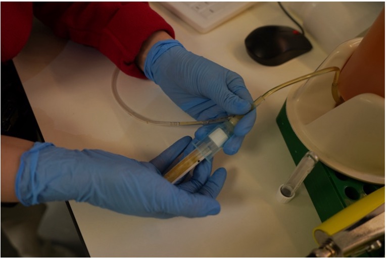 In dieser „Glocke“ wird das Plasma von den anderen Blutbestandteilen getrennt. Foto: Maria Salem